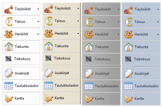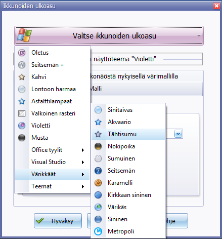 Jäähyväiset Windowsin harmaalle. Ohjelman ulkoasu voidaan valita 39 erilaisesta värimallista.