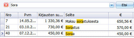 Kirjanpidon tositelista on uusittu, ja siinä on mm. hakutoiminto.