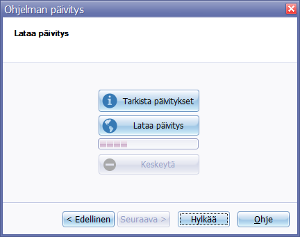 Päivitykset voidaan hakea suoraan ohjelmasta käsin.