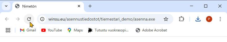 Ruudulle avautuu uusi selainikkuna, jonka osoiteruudussa on asennustiedoston osoite. Napsauta painiketta Lataa tämä sivu uudelleen (kuten kuvassa) tai napsauta kohdistin osoiteruutuun ja paina Enter.