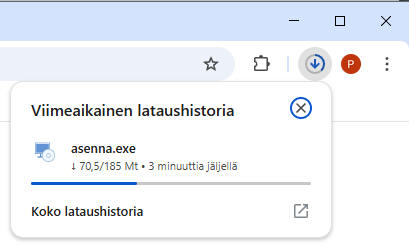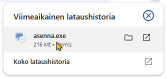 Kun lataus on loppunut, napsauta asennusohjelman nimeä, jolloin asennus alkaa.