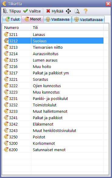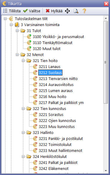 Tositetta kirjattaessa tili valitaan helposti listasta tai tilipuusta.