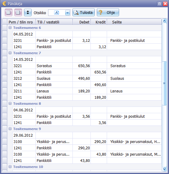 Päiväkirja on tuloste, jossa tositteet on lueteltu numerojärjestyksessä.