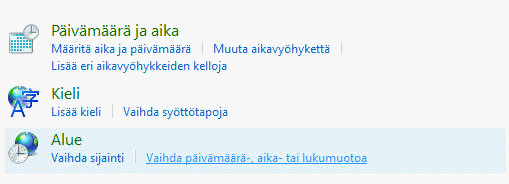 Seuraavasta ikkunasta valitse Vaihda päivämäärä-, aika- tai lukumuotoa