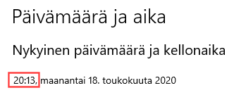 Ajan esitysmuodon tulee olla kuten kuvassa 20:13, ei 20.13